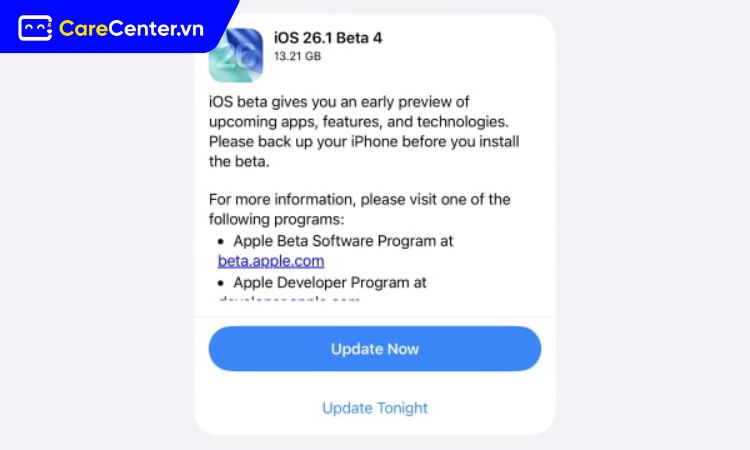 Apple phát hành iOS 26.1 public beta 4 cho người dùng thử nghiệm